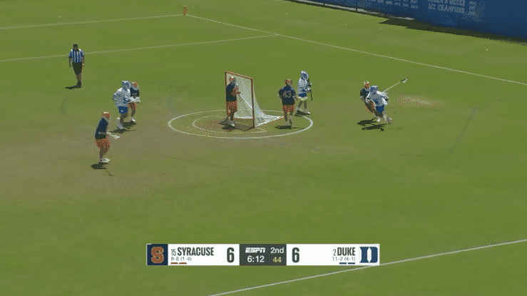 By cutting toward the ball, the Duke attacker uses the cage to "screen" his defender, creating a massive window for the feeder.